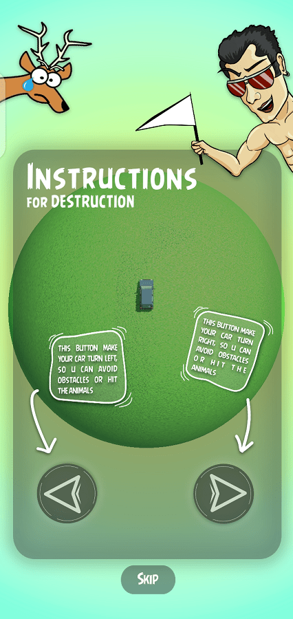 After reading the instructions now move to the next step where you will game the main interface where you have to start driving the car left and right to protect animals while driving through the path.