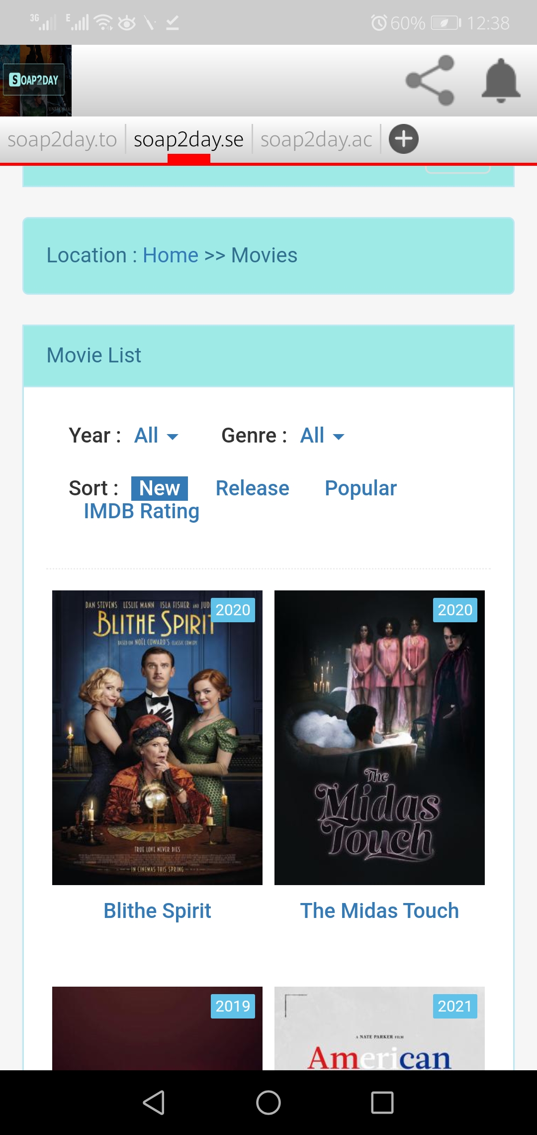 - In this category, you will get all movies and series which are released recently like Blithe Spirit, The Midas Touch, Marvel Studios, American Skin, A Celebration of the Music from Coco, Penguins, Police, RocketMan, The Josephine Baker Story, An Innocent Man, The Gods Must Be Crazy 2, Bloody Hell, Six Minutes to Midnight, Secrets, The Pact 2 and many more.