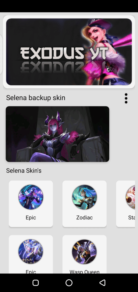 While installing the app allow all permissions and also enable unknown sources from security settings. After installing the app open it and you will see the main page where you will see a list of premium ML skins and costumes which you can easily inject into your account by simply tapping on them.