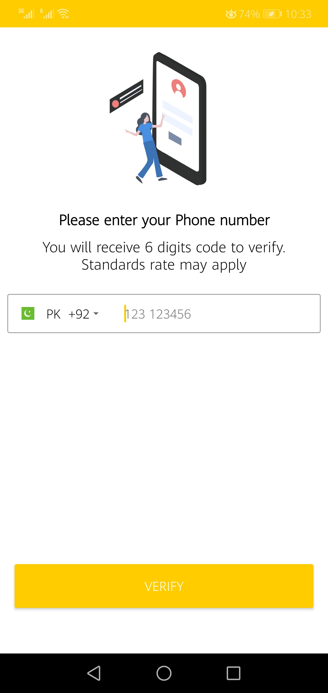 After installing the app open it and start creating an account with a valid active cellphone number and then verify your account using the OPT number send on your mobile number. After activating your account now start using your account.
