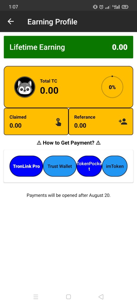 After activating your device now, you need to tap on start TC to mine the token. You will see your profit every 24 hours of mining on the dashboard of the app. This app currently works with below mentioned online markets like,
