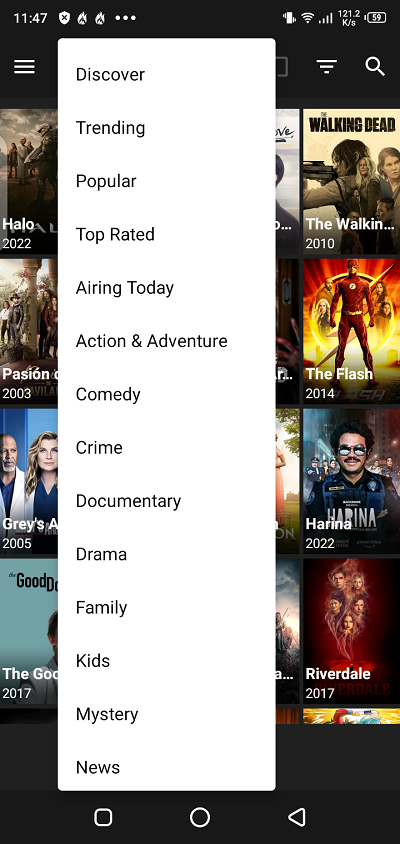 While installing the app allow all permissions and also enable unknown sources from the security setting. After installing the app open it and you will see the main page of the app with tons of movies and series on your device. Apart from movies and series, you will also get the below-mentioned menu list on your screen too like,