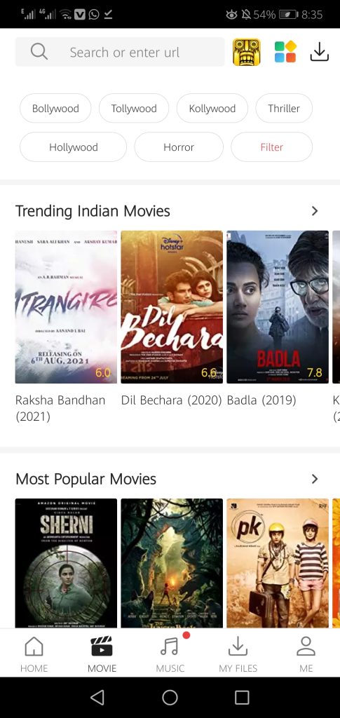 Choose your desired option from the above menu list and enjoy streaming and downloading your favorite content for free. Apart from the video content, you may also option to download and install apps and games.