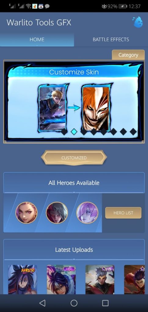 Which battle effects Heroes and Skins MLBB players will get in Warlito Tools GFX Apk 2023 for free?