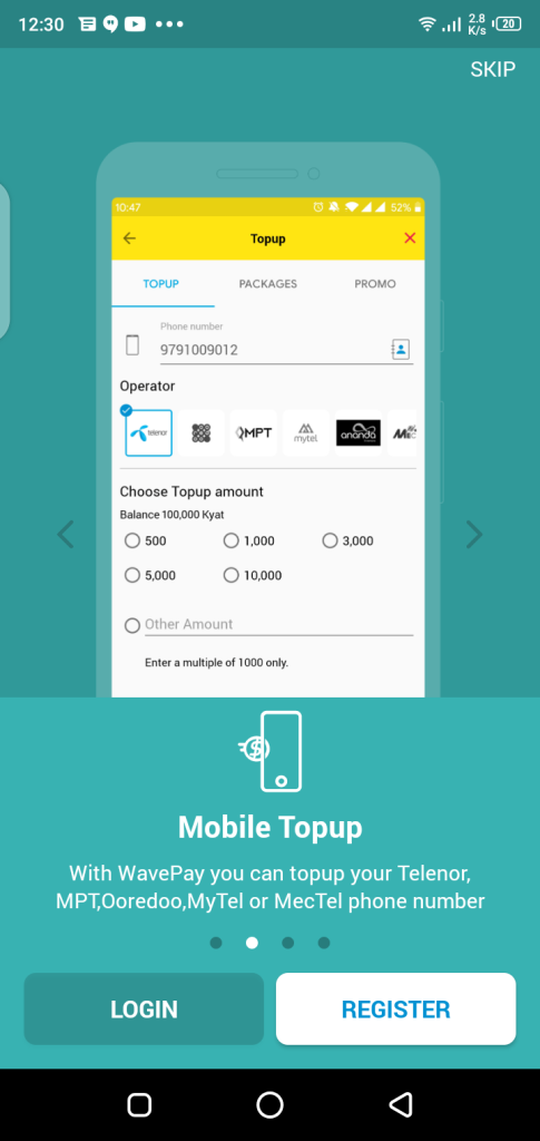 - It also allows users to make top-ups for all mobile companies working in Myanmar like Telenor, MPT, Ooredoo, Mytel, MecTel, etc. directly from your device through this new app.