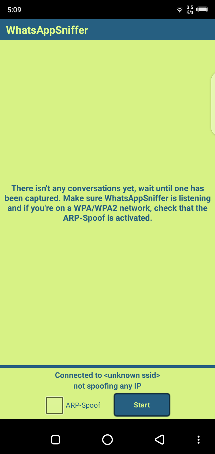 - You will see the home screen wherein the bottom of the app accepts the ARP check box to search for the device using the WhatsApp app under your data connection or Wi-Fi connection.
