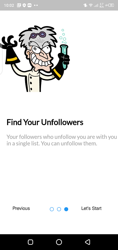 After installing the app open it and you will see the main features of the app. If you know them then skip them by tapping on the skip option in-app and now log into the account that you want to analyze. You can easily analyze multiple accounts by subscribing to the mentioned premium packages.
