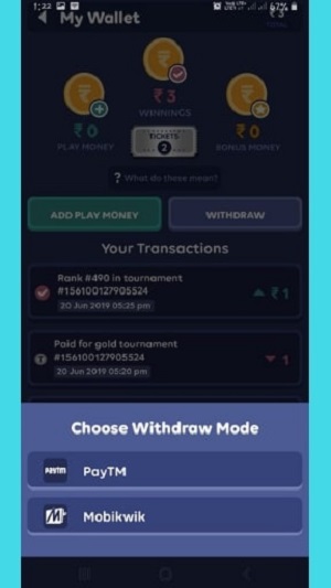 It also provides users easy access to 24/7 Tournaments which helps them to earn extra money. Once you collect the withdrawal amount then you can easily withdraw your money through your PayTM account instantly.